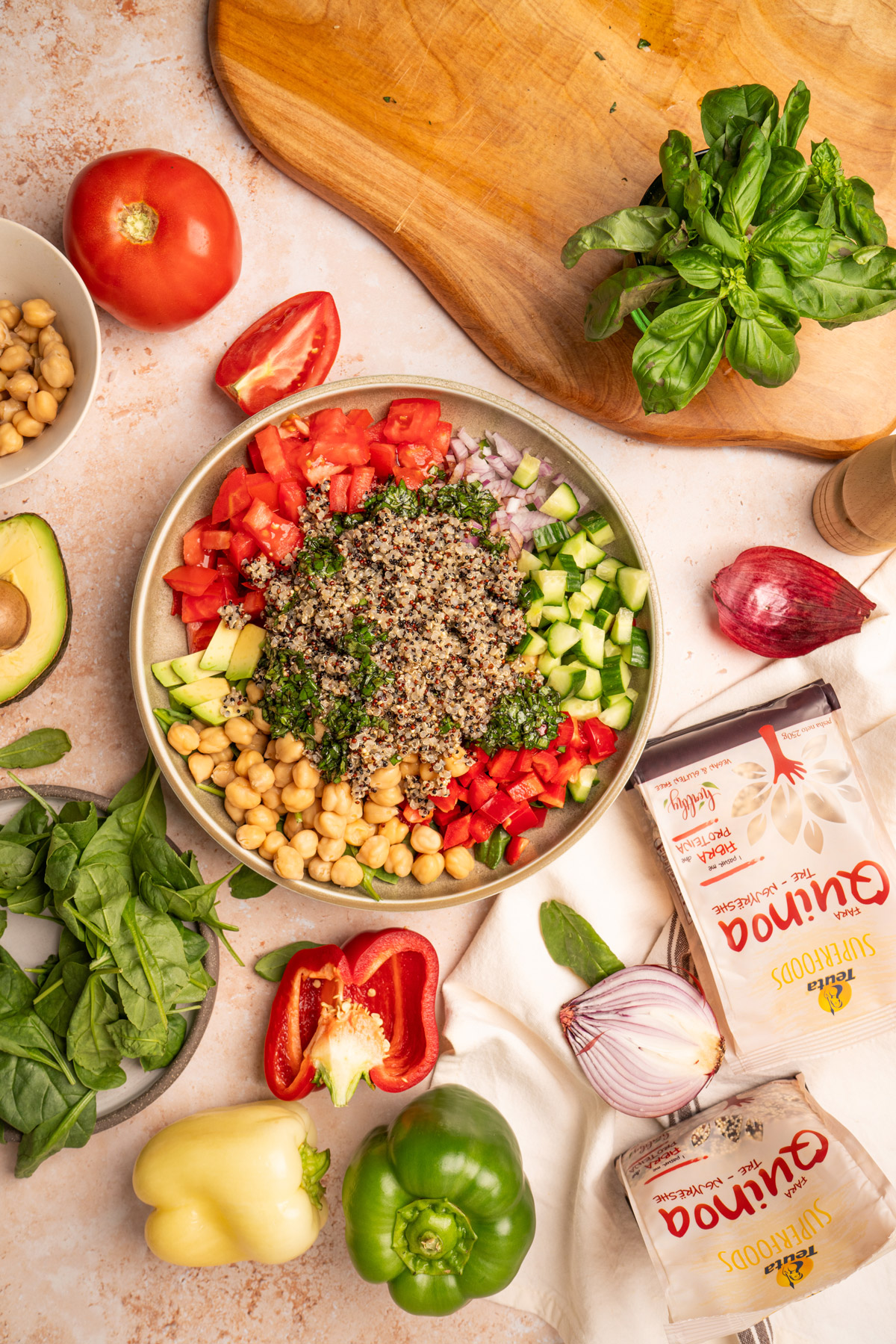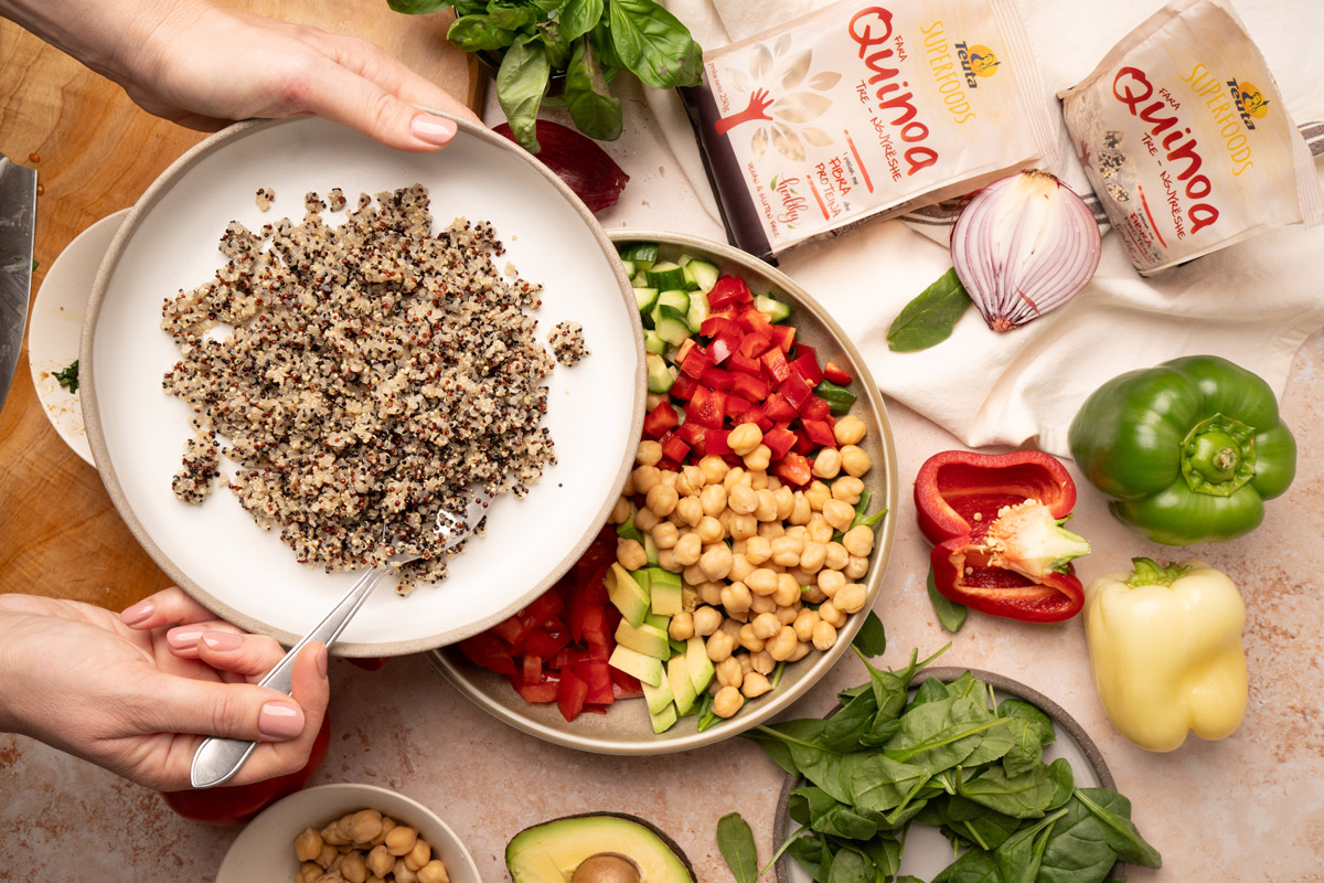 After washing the quinoa with cold water up to 3 times, we place it to boil for 15-20 minutes. Once the quinoa has boiled, we let it cool.
